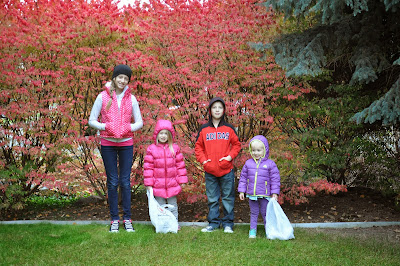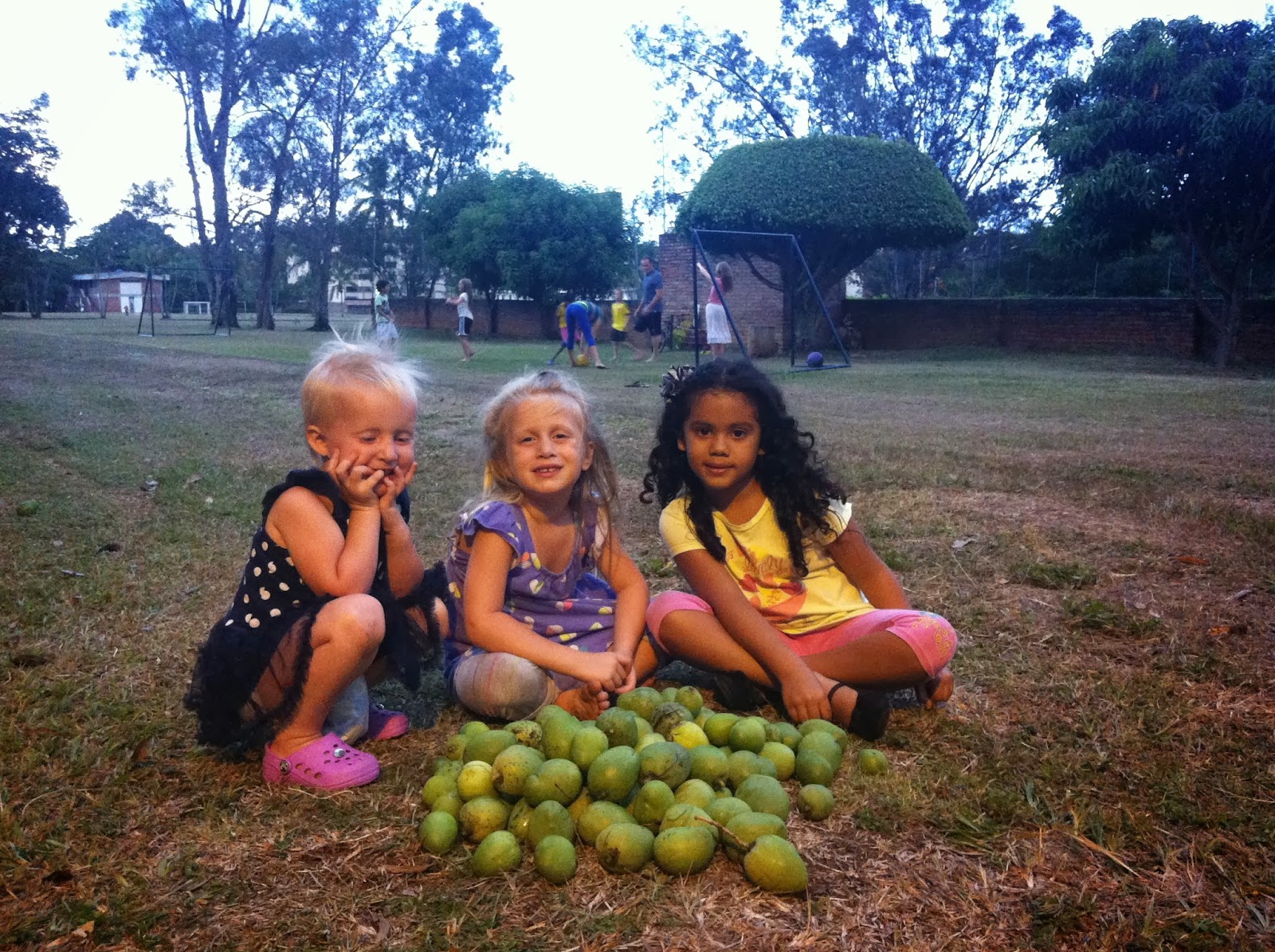 These girlies spent a few hours collecting mangoes from the trees and piling them up.